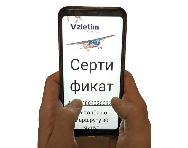 В настоящее время возможности "Vzletim" охватывают практически весь спектр запросов наших клиентов, от обычных ознакомительных полётов на Цессне или Бристелле до стратосферных полётов на МиГ-29 с выполнением фигур высшего пилотажа. Разумеется, в последнем случае будут действовать некоторые ограничения, в том числе по здоровью пассажира. В полёт вы можете отправиться в одиночку, парой либо с двумя друзьями. В каждом случае мы подберём для вас удобный современный самолёт. Опытные пилоты гарантируют отличные виды с высоты, массу острых ощущений и полную безопасность для вас и ваших спутников. Вы можете выбрать сертификат на полет на самолете: